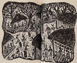 不安と悲しみでいっぱいで、自分の家のやぶれた板戸にもたれて